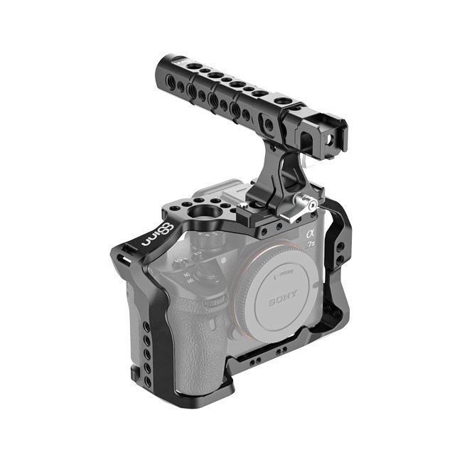8Sinn Sony a7III / a7RIII Cage V2 + Top Handle Pro (includes SNR60MM) Key features: – 1/4″ mounting points – 1 x 3/8″ mounting point – Cold shoe Handle key features: – Quick-release system – Front/back, left/right adjustment – 1/4″& 3/8″ mounting points – 1 x 3/8″ mounting point with Arri locating points – 2 x cold shoe mounts – NATO standard mounting – Aluminum made *Optional: (drop down menu) – HDMI clamp Metabones Support This page presents you with the set of two 8Sinn products (also sold separately). Cage and top handle are essential for filmmakers. Adding peripheral accessories is a lot easier if you have lots of various mounting points at your disposal. 1/4″ mounting points on the left side of the presented cage are located 40mm apart and only certain accessories can be mounted there. To mount an Arri side handle you can use one of the combinations below: 1.8Sinn Arri NATO Rosette 28mm Mount8Sinn Safety NATO Rail 90mm2.8Sinn Arri NATO Rosette 28mm Mount8Sinn Safety NATO Rail 95mm3.8Sinn Arri Rosette 32mm Mount with Arri Locating Pins8Sinn Safety NATO Rail 95mm Dimensions: Height: 171mm, Length: 149mm, Width: 59mm; Weight: 378gSet includes: 1pc 8Sinn Sony a7III / a7RIII Cage, 1pc 8Sinn Top Handle Pro, 1pc 8Sinn Safety NATO Rail 60mm